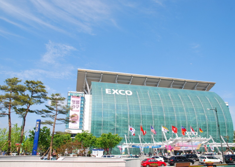1995年1月確定了大邱綜合貿(mào)易中心建立計劃,7月成立了大邱綜合貿(mào)易中心,并于1997年5月開工,2000年12月竣工,成為了地方第一個會展中心。2007年8月,公司名稱由大邱展覽會議中心改名為EXCO。2011年5月展廳擴建,總占地面積43014.4㎡,建筑面積26944.91㎡,地上5層地下4層。主要設(shè)施包括專業(yè)展廳,奧體中心,會議廳,會議室,小禮堂(2014年12月開業(yè)),EXCO購物中心和停車場等。