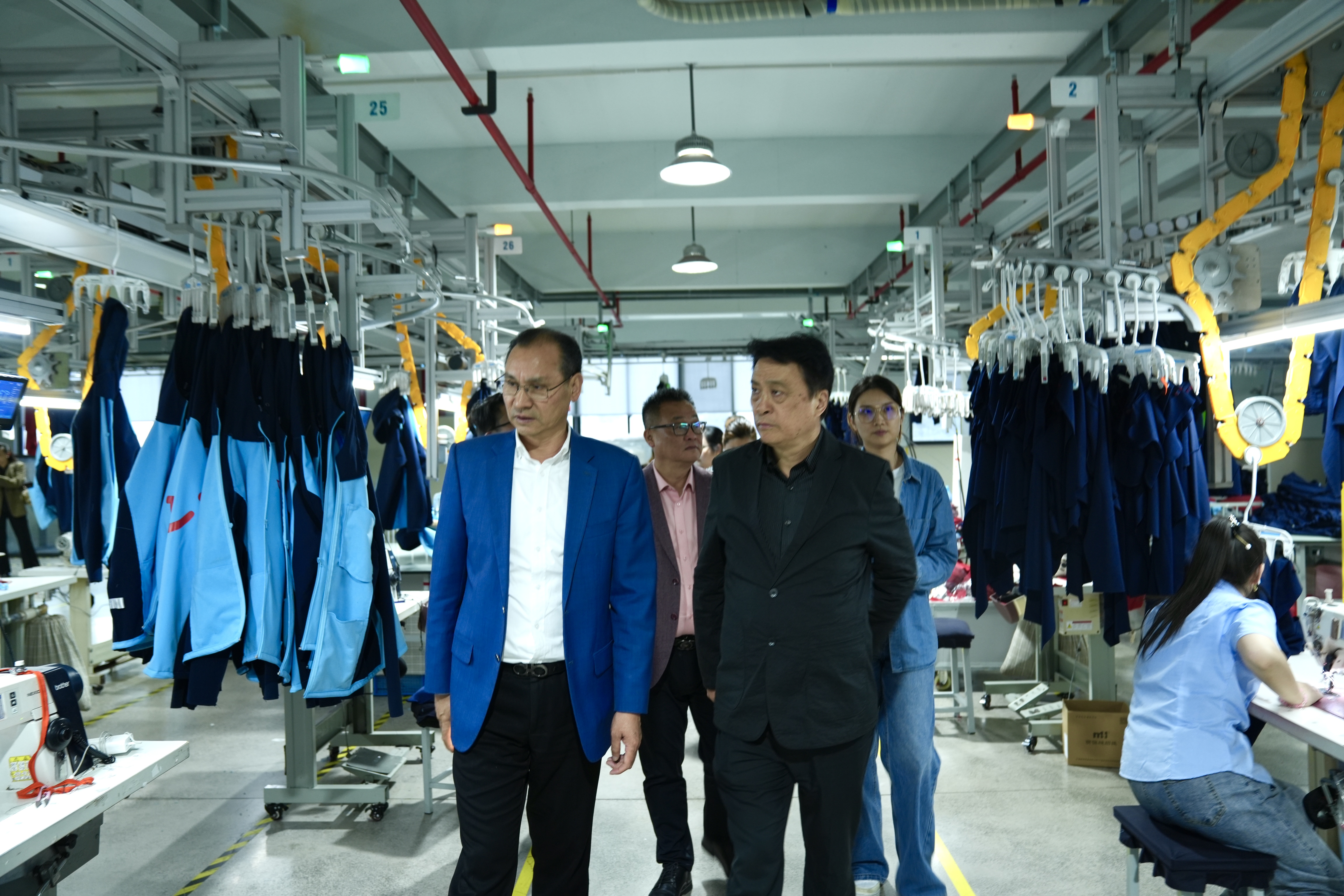 President Zheng and the delegation received an on-site briefing from Vice President Shi Mei on the Group's core sectors centered around the textile and apparel industry: the 5G Digital Smart Manufacturing Factory, the FIOCCO high-end women's wear brand, and the Yesgo Valley Fashion Technology Park.