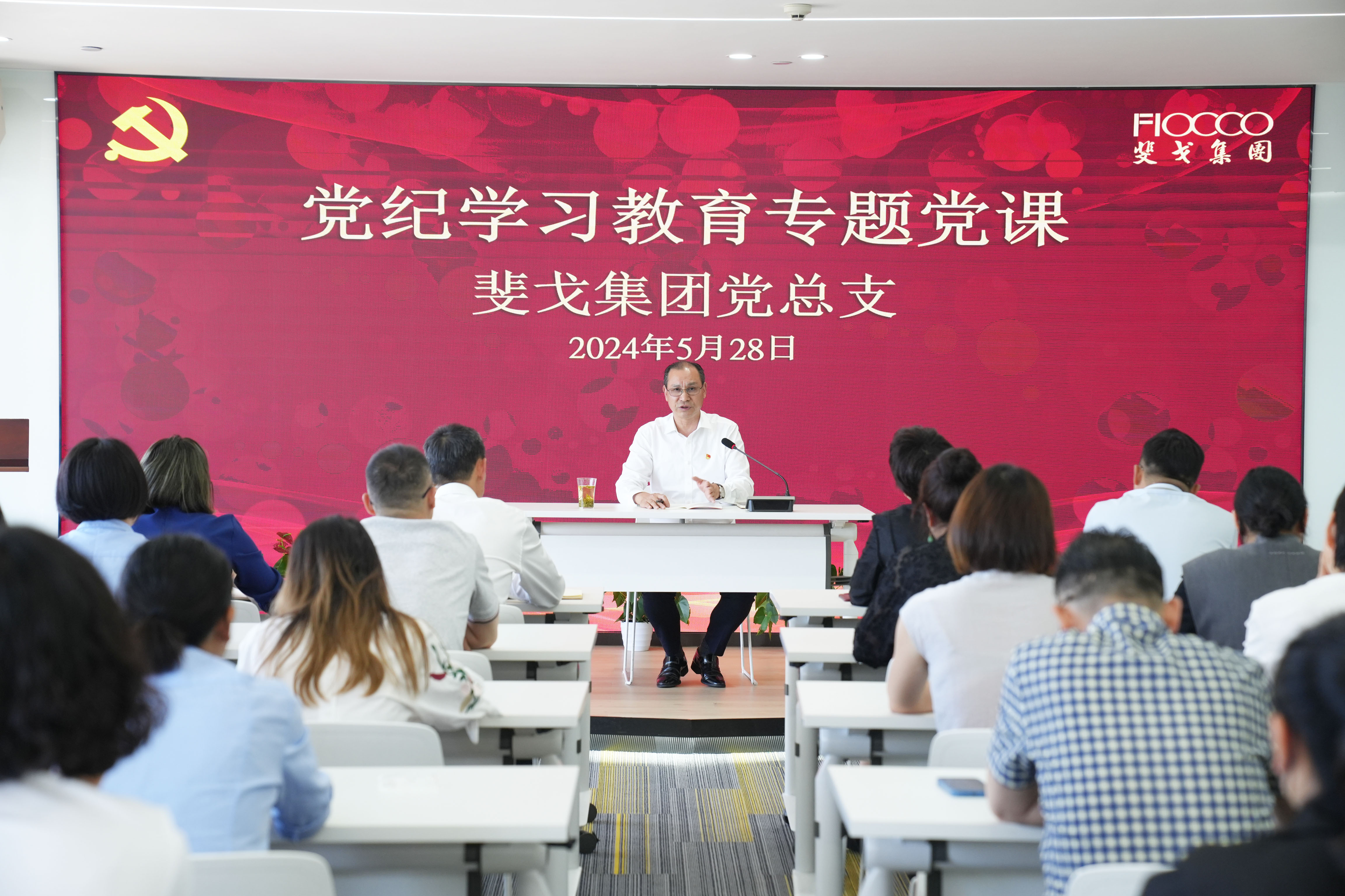 In order to deepen Party members' understanding of discipline rules and further advance the implementation of discipline education, FIOCCO Group held a special Party lecture on discipline education on the afternoon of May 28. Shi Yun, Secretary of the Group's General Party Branch and Chairman of the Board, delivered a special lecture report. All Party members and probationary Party members from subordinate Party branches attended the event.