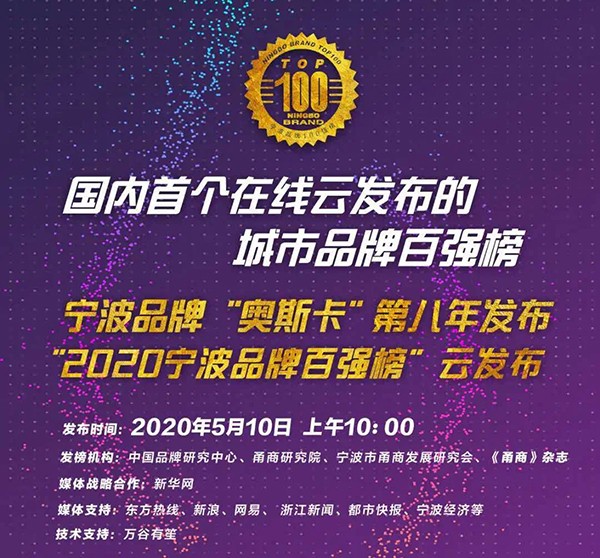 The "Ningbo top 100 brands list" is organized by the Ningbo Business Development Research Association and jointly produced by the brand strategy research group of the Chinese Academy of Social Sciences, the China Marketing Association, the China brand research center and other domestic authorities. The original intention of making the list is to create an "Oscar" of Ningbo brand value and inspire more Ningbo enterprises to embark on the brand road with the power of benchmarking Attach importance to brand building.