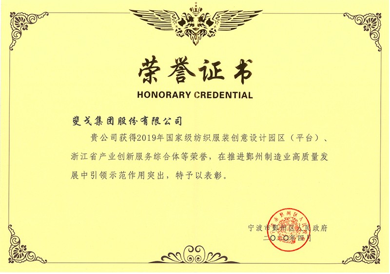 On the morning of April 9, Yinzhou District high quality manufacturing development conference was grandly held in the Grand Theater of Yinzhou District Culture and Art Center, and awarded the honorary title of Yinzhou District manufacturing high quality development benchmarking enterprise to the enterprises that won various national and provincial honors in 2019. FIOCCO YESGO won the two titles of national textile and garment creative design Park (platform) and provincial industrial innovation service complex with the transformation and development of textile and garment industry and outstanding achievements, and was grandly commended by the conference. Shi Mei, vice president of FIOCCO GROUP and executive director of YESGO, attended the conference and received the award.