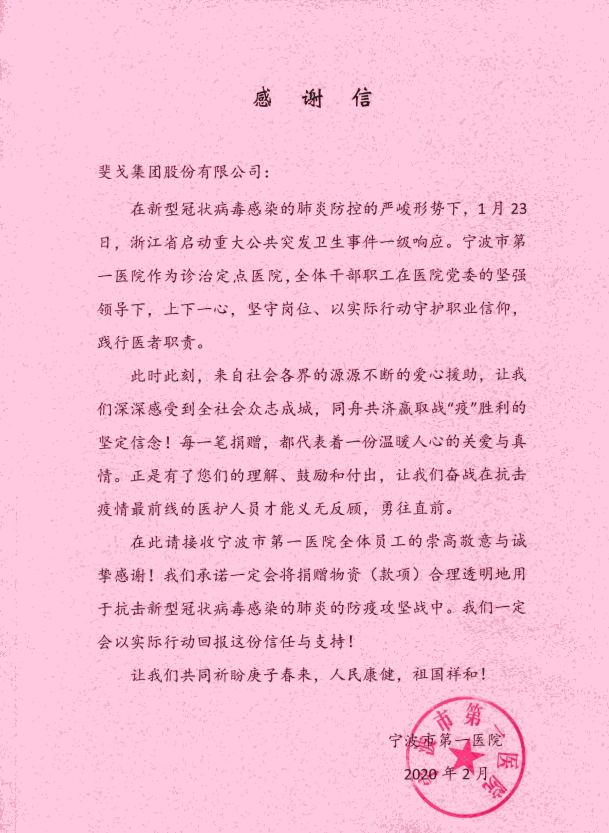 On the morning of February 14, FIOCCO GROUP donated 1280 sets of high-density yarn woven high-end cotton pajamas worth nearly 200000 yuan to Ningbo aid Hubei medical team, Ningbo first hospital and Ningbo Huamei hospital.