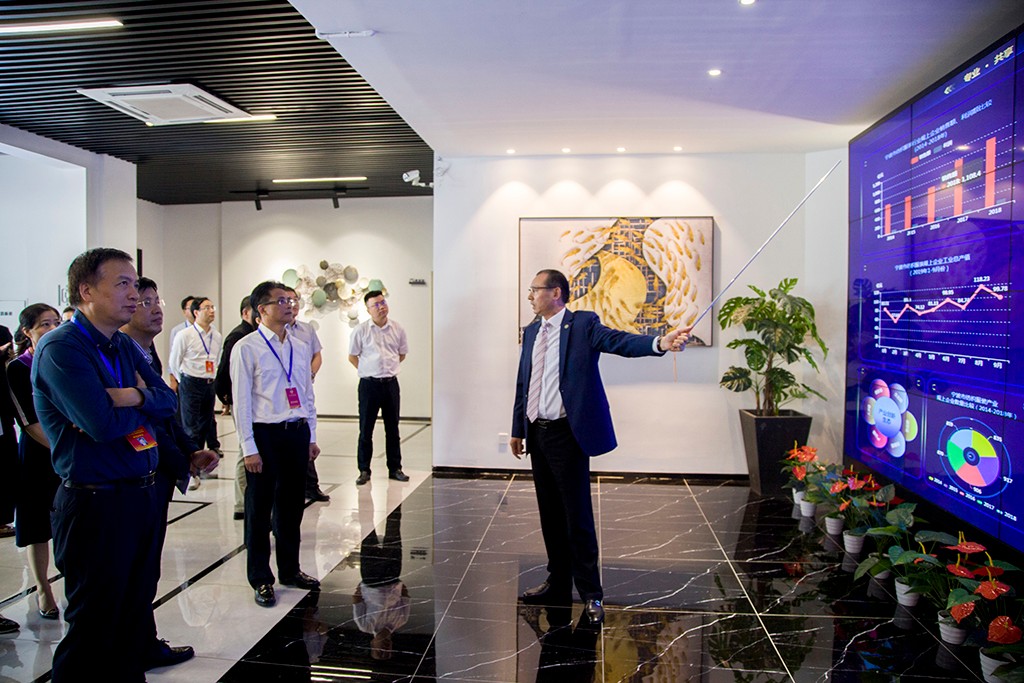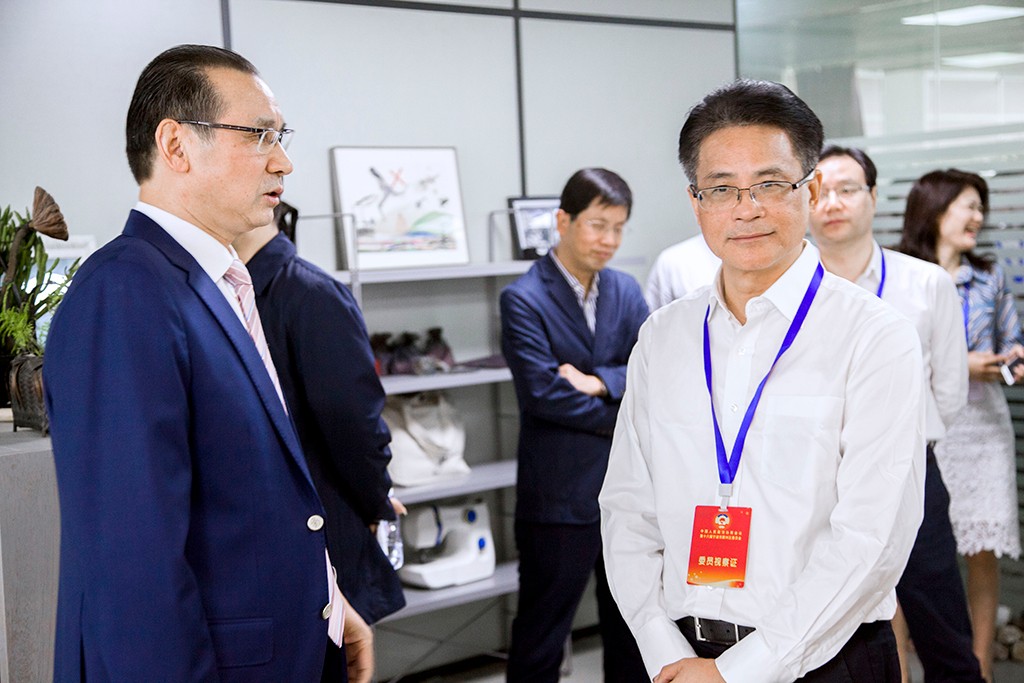 Zheng kunfa and other leaders visited the big data platform, shared fabric area, shared roadshow hall, shared studio and foreign trade comprehensive service platform of YESGO Valley Industrial Park, and had a cordial conversation with the enterprises settled in the industrial park.