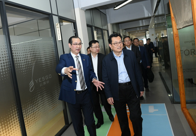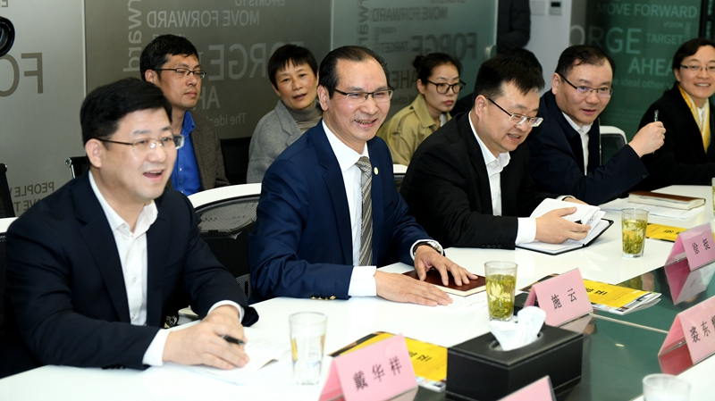 裘市长一行在集团董事长施云的陪同下,重点参观了云裳谷平台,随后在云裳谷会议室听取了斐戈集团企业发展情况。