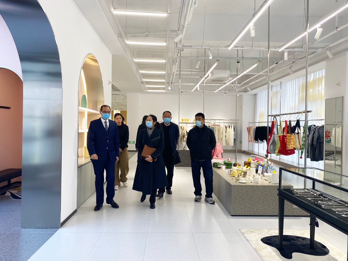 童部长一行先后参观了云裳谷一期、外贸综合服务公共平台、特色入驻企业、云裳谷网红打卡街区和Y11买手集合店。