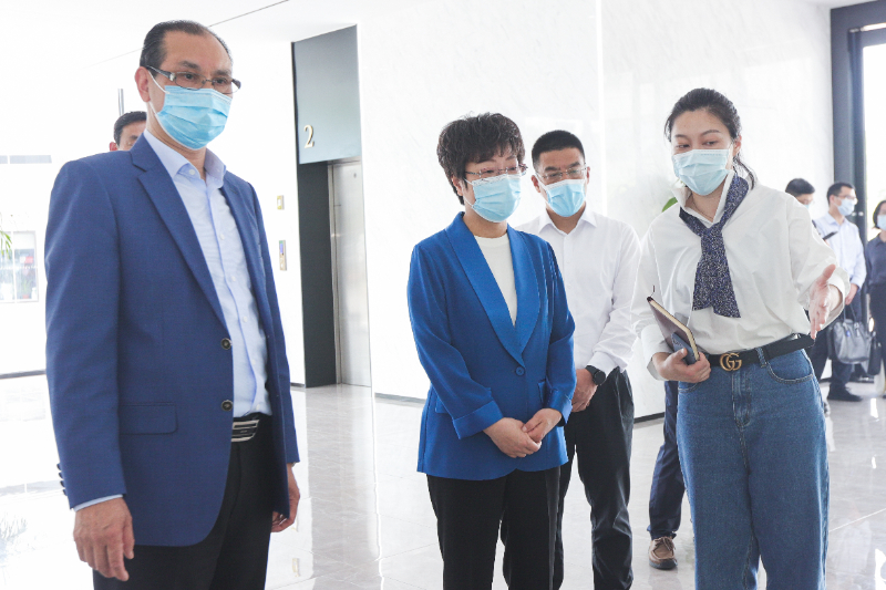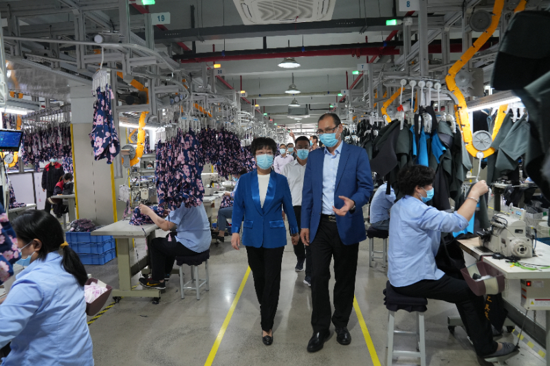4月25日上午,鄞州区人大常委会主任杨慧芳一行在东郊街道党工委书记韩洁的陪同下莅临斐戈集团开展“三服务”活动,暨检查疫情防控和安全生产相关工作。斐戈集团董事长施云、斐戈集团董事、副总裁施美及云裳谷总经理毛李璐接待并分别介绍了相关情况。