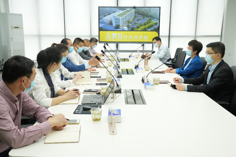 杨慧芳主任一行实地参观了斐戈·云裳谷平台内的5G数字化智能制造中心、Y11时尚街区、设计展示展销中心等区域,详细了解了园区建设及运营情况。
