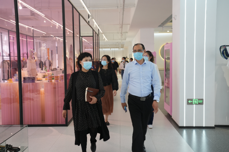 4月25日下午,鄞州区商务局长王新一行到斐戈集团调研,在集团董事长施云的陪同下参观了斐戈·云裳谷时尚科技产业园并深入了解集团外贸出口以及云裳谷平台的建设和发展模式。
