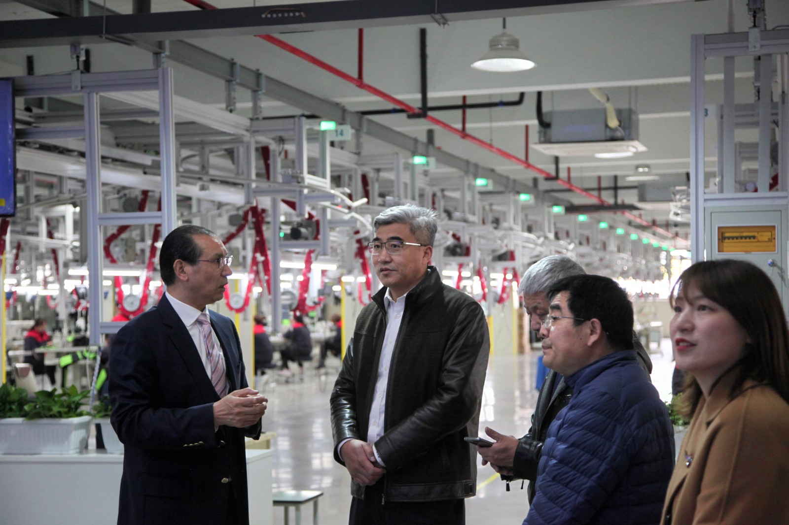 在集团董事长施云陪同下,杨晓东副会长一行参观了斐戈·云裳谷平台以及5G数字化智能工厂,深入了解了云裳谷平台建设情况。