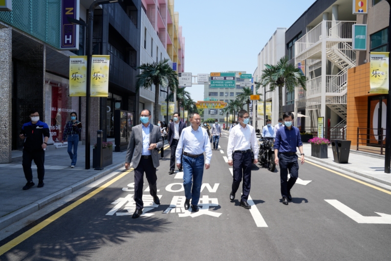 在斐戈集团董事长施云的介绍下,陈志成副厅长一行先后参观了云裳谷Y11时尚街区、设计师展示展销平台等区域,详细了解了斐戈集团·云裳谷平台的整体规划和运营模式。