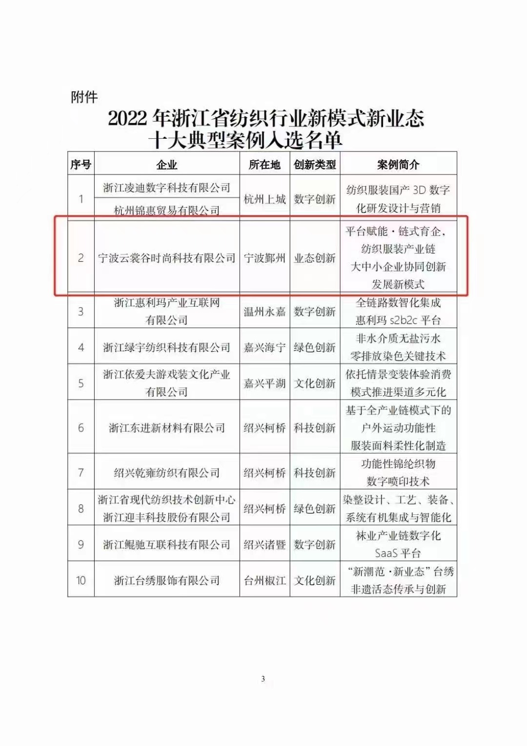 近日,浙江省经济和信息化厅公布了《2022年浙江省纺织行业新模式新业态十大典型案例名单》。斐戈·云裳谷时尚科技园名列其中,可谓2022年各项荣誉完美收官!