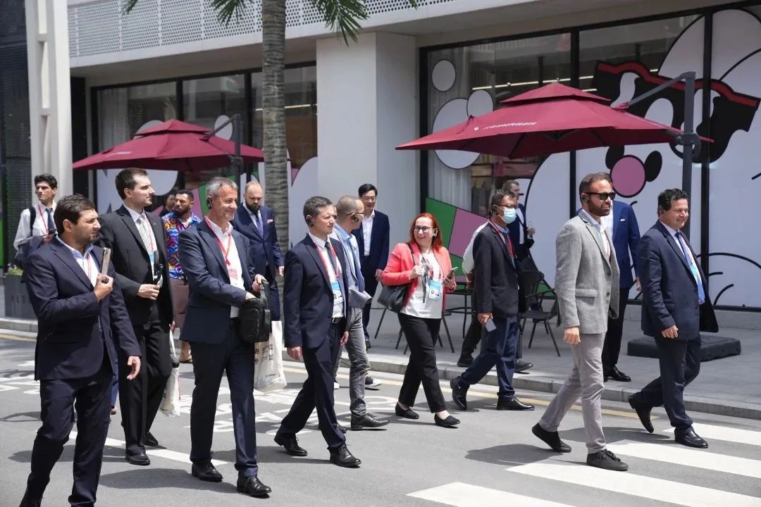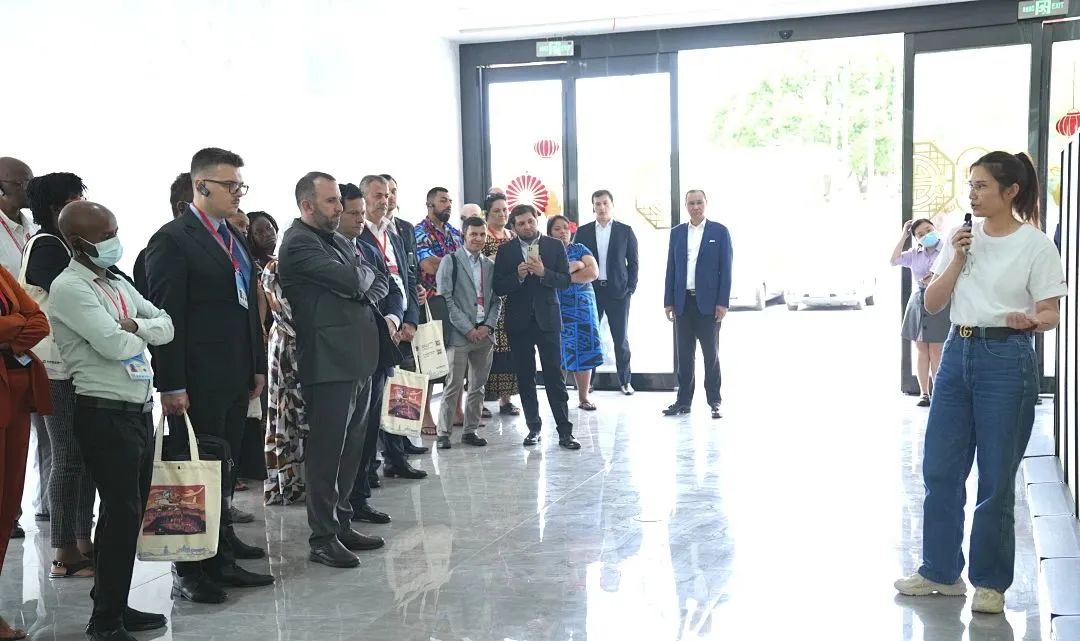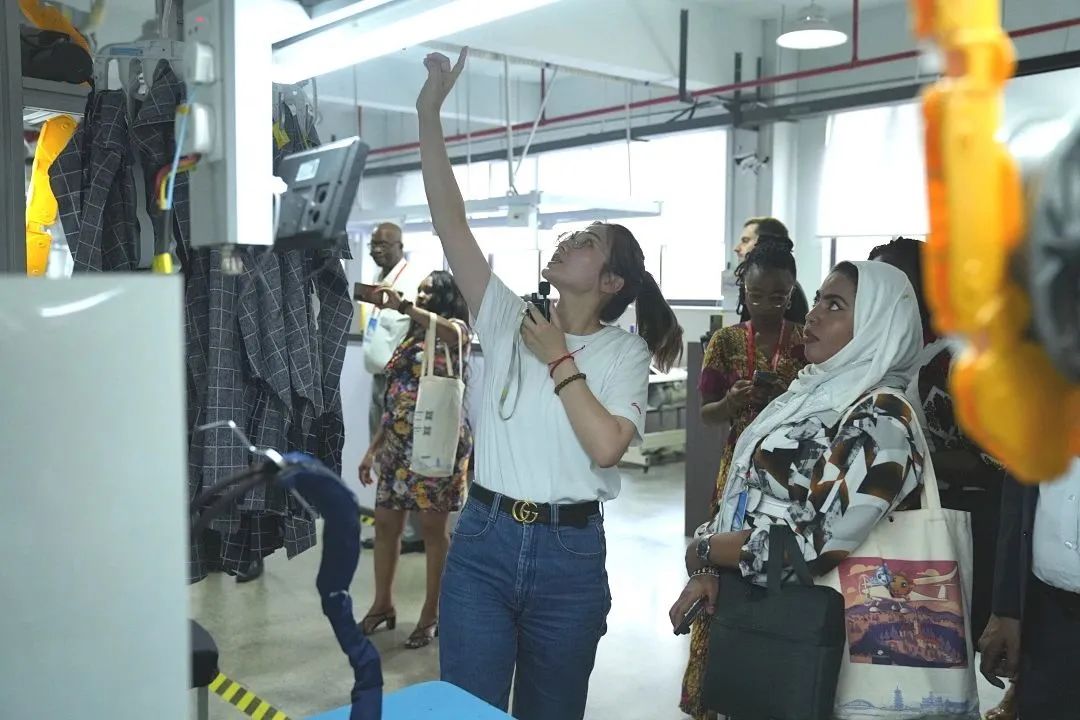 "Amazing! It feels like being europe. I think I'll remember this place!"(太神奇了!就像在欧洲一样,我想我会记得这里)交流过程中,中东欧代表团时不时边参观边对眼前的场景赞叹不已!并对5G数字化智能制造车间的先进性和AGV智能搬运机器人拍手叫好,纷纷表示,中国服装企业真是了不起啊!代表团希望以后有机会还能来到这儿,可以和斐戈集团一起合作相关项目!