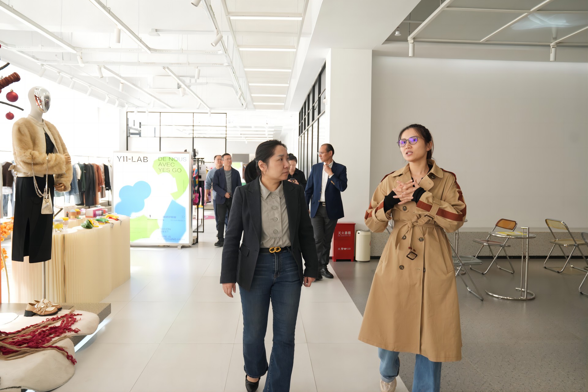 随后,王局一行在集团董事、副总裁施美的介绍下参观了云裳谷设计师时尚服装服饰展示展销平台、Y11网红时尚街区等空间。