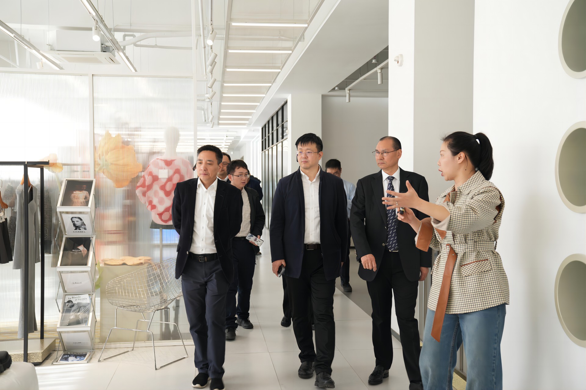 随后,张处长一行走进了云裳谷设计师时尚服装展示展销平台、Y11网红时尚街区等空间,深入了解云裳谷时尚纺织服装融通发展双创服务平台项目的发展情况及园区纺织服装中小企业的经营情况。