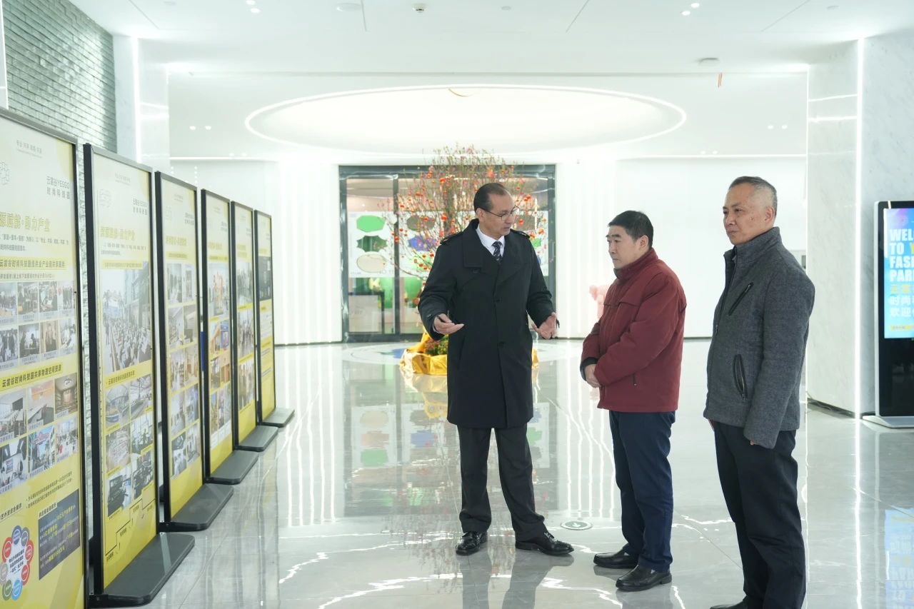 2月23日下午,宁波市贸促会党组书记、会长颜伟国,党组成员、副会长徐海峰等一行领导莅临斐戈集团调研指导。斐戈集团董事长施云,集团董事副总裁施美,副总裁、华艺外综董事长周哉芳等相关负责人陪同接待。