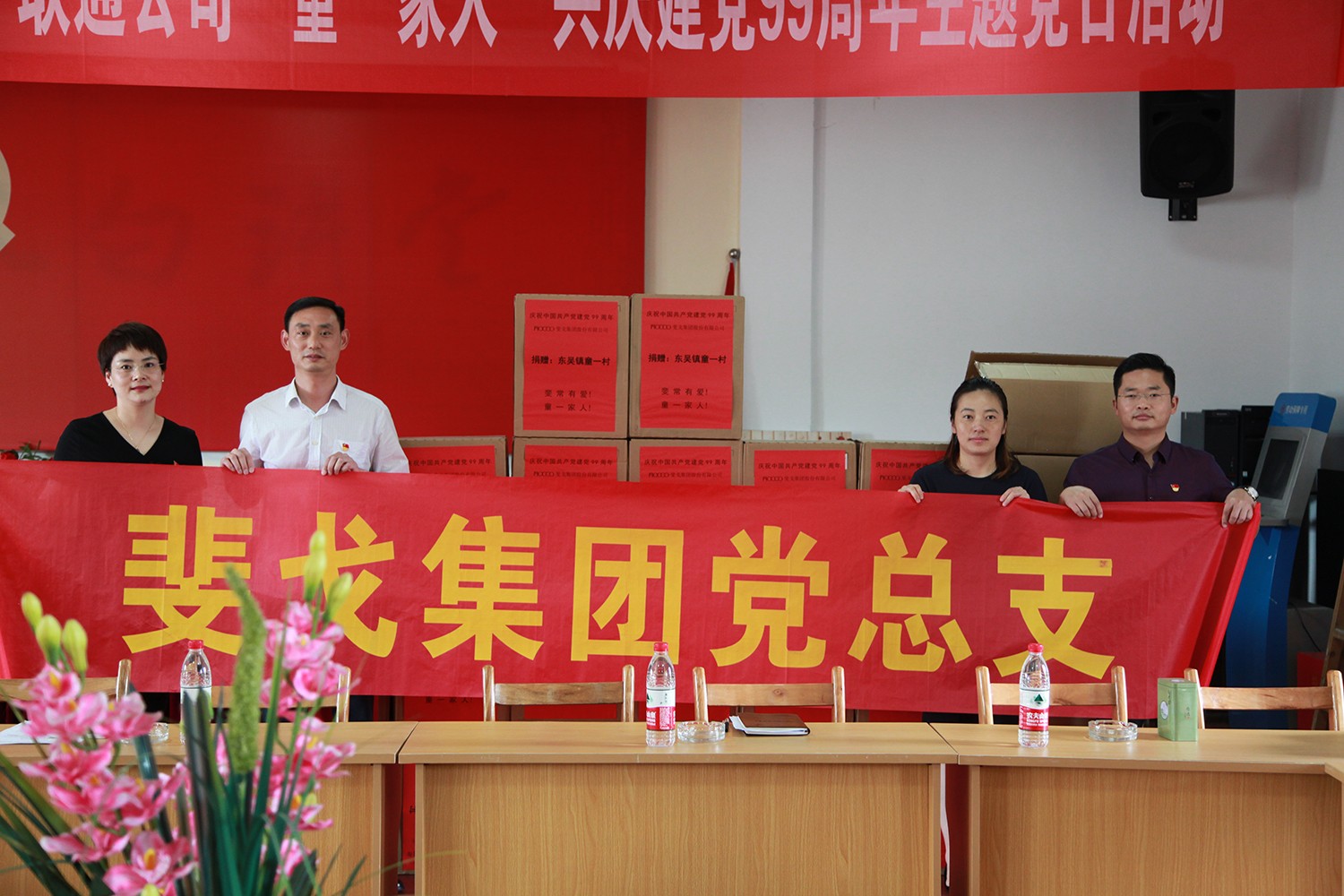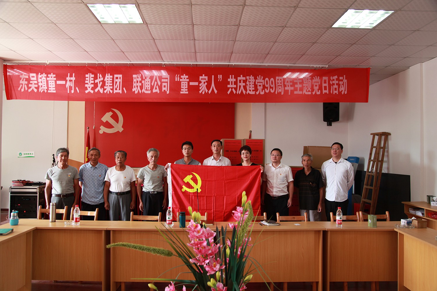 为纪念中国共产党成立99周年,传承和弘扬党的优良传统,进一步提升基层党组织的组织力和凝聚力,今天下午,斐戈集团党总支赶赴帮扶结对村——东吴镇童一村,开展“童一家人”共庆建党99周年主题党日活动。活动由重温入党誓词仪式开始,在鲜红的党旗下,党员同志们高举右手,庄严宣誓,重温誓词,表达了不忘初心跟党走,牢记使命建新功的坚定决心。随后,斐戈集团党总支副书记洪寅寅在致辞中表明了此次活动的目的,斐戈集团党总支将带领全体斐戈人,凝心聚力,担当实干,不忘初心,牢记使命,与童一村携手同行,共谋发展。