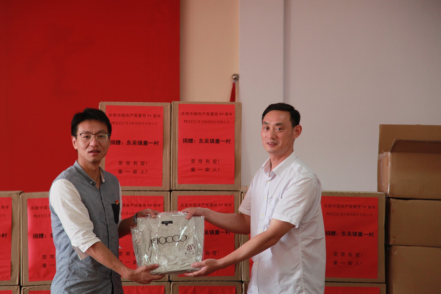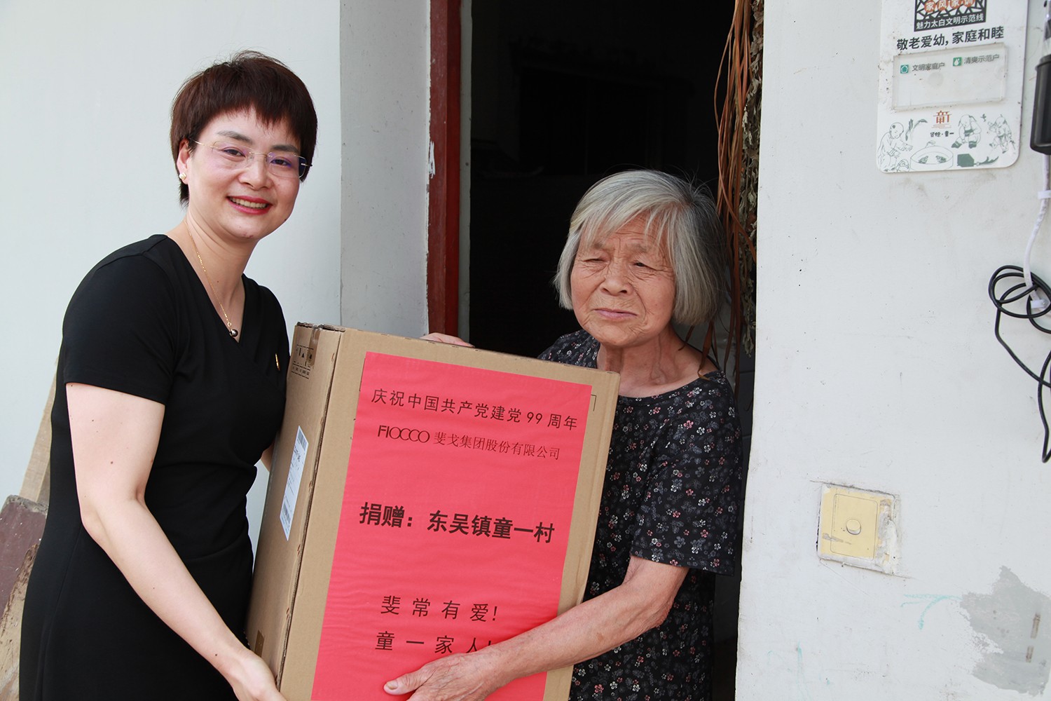 活动中,斐戈集团向童一村捐赠了400件斐戈品牌T恤,发放了20户困难党员、特困群众的慰问品,并实地走访5家贫困老党员,详细了解他们的身体状况和生活情况,为他们送去节日的祝福和问候,带去党的关怀与温暖。