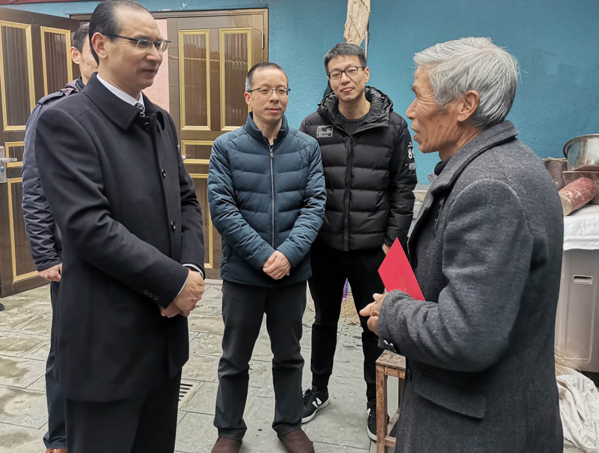 1月13日上午,在东吴镇工会主席徐荣、童一村党总支书记陆文波、童一村妇女主任应忠燕的陪同下,施董一行走访慰问结对帮扶村17户因病致贫的困难群众,为他们送去了慰问金及新年的问候。
